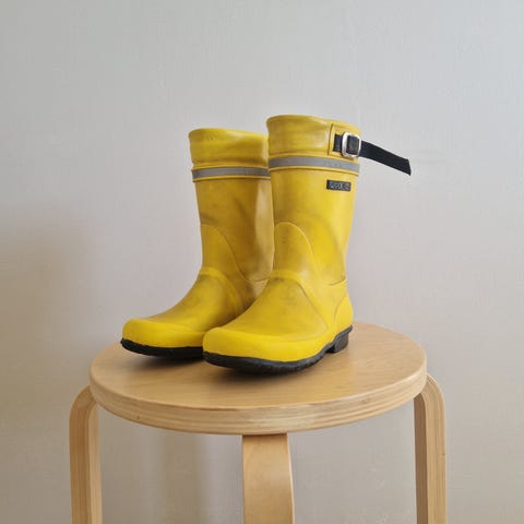 Yhdellä lapsella käytetyt ehjät kumikengät, sisämitta 19,5cm ja koko 29.