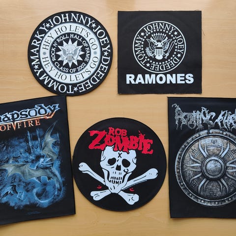 Uusia, aitoja ja käyttämättömiä suuria bändimerkkejä, jotka useimmiten kiinnitetään takin selkään. Ommeltavia.