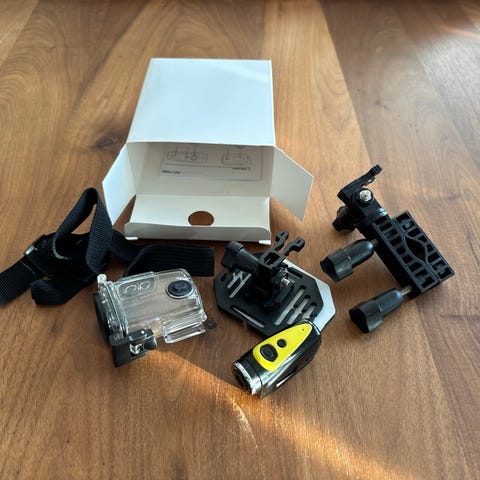 Action kamera, jolla saa still kuvia ja videota.