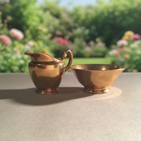 Antiikkinen keraaminen lysterikermakannu noin 1870-luvulta.