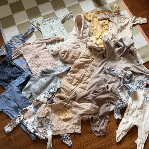Myydään pakettina hyväkuntoisia ja siistejä vauvan vaatteita, mm. bodyja, housuja ja lappuhaalareita.