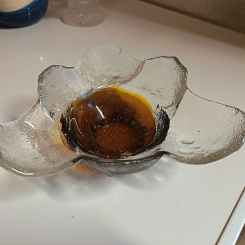Iittala lasimalja jalustalla meripihkanruskea