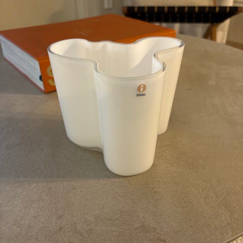 Saa tarjota reilua hintaa! Valkoinen iittala aalto Lasinen maljakko. Todella hyvä kunto, ei mitään käytönjälkeä. Korkeus 12cm, leveys leveimmästä kohdasta 15cm.