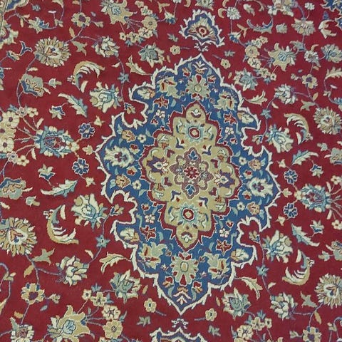 Kaunis punaraitainen käsinkudottu matto
