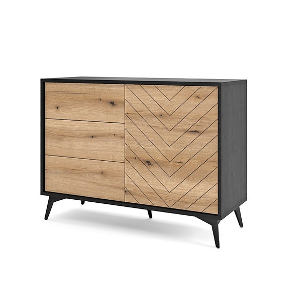 Tyylikäs Kaisa tv-taso. Kaisassa on upeat rimoitetut ovet ja kaunis pyöristetty muotoilu.