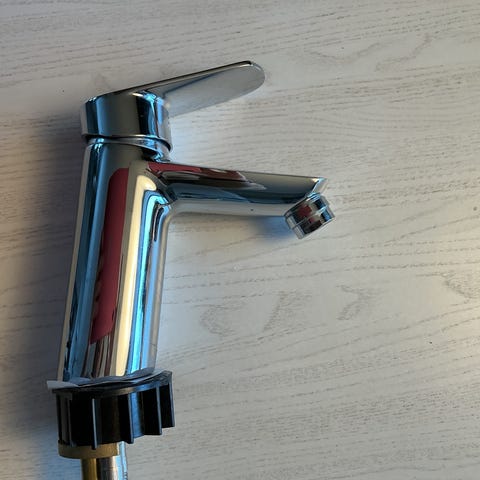 Nätti oras pesuallashana bideesuihkulla. Hanassa yksiotevipu ja kromattu pinta. Mukana käsisuihku, suihkuletku ja pidike sekä hanan liitäntäputket. Soveltuu pesualtaan yhteyteen, jossa tarvitaan bidee- tai hygienia suihkua.