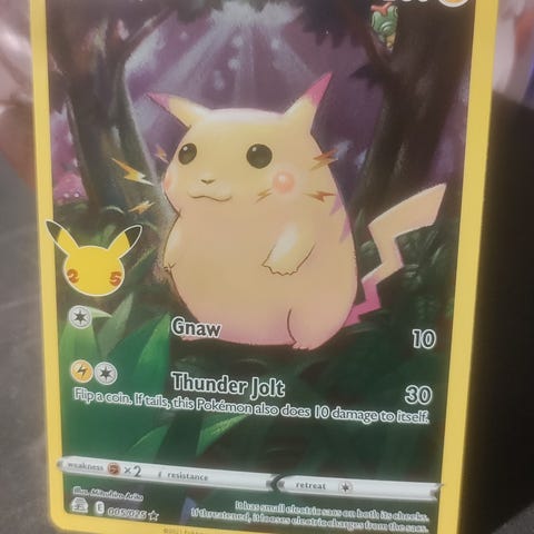 Pokémon Pikachu keräilykortti. Kortissa on Pikachu-hahmo ja pelitekstit, ja se kuuluu Pokémon-korttipeliin. Soveltuu keräilyyn ja pelaamiseen Pokémon TCG -pelissä. (Haku espoo vain setelit!)