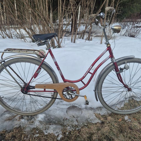 Selling a Tunturi Tiffany. The bike has been fully serviced and is ready for summer use. It has new tires and tubes. The chain and rear sprocket have been replaced with a larger sprocket. The full range of the planetary gearbox can now be used. The oil in the planetary gearbox has also been changed. All bearings have been lubricated and tightened to the correct torque. Everything runs great. The bike has an unrivaled roll rate comparable to other higher-end bikes. I will also be giving away the original saddle and handlebars. I can install the original black handlebars and white saddle on the bike before selling. I can deliver the bike a short distance for inspection. The bike is in excellent condition and rides very well. Selling exclusively due to moving to another country.
