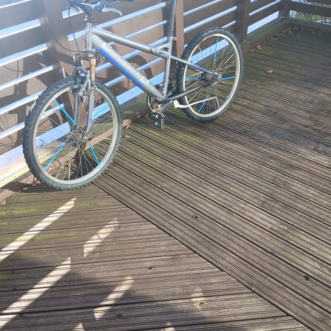 Tästä perus pyörä korjaukseen ja tuunaukseen. Jalkajarru. Takarengas jostain syystä välillä "lukkiutuu". Tämä vaiva jäi renkaan korjauksen yhteydessä mutta on korjattavissa. Muuten ihan toimiva peli.