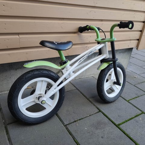 Punainen potkupyörä taaperolle. Ajettu vain sisällä. Nouto Lauttasaaresta. Koirakoti.