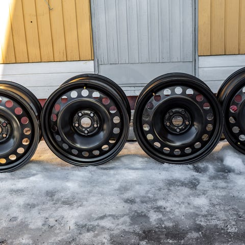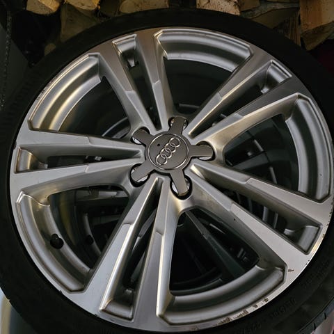 Auto myyty ja renkaat jäi itselle. Kaikissa pintaa 6-7mm. Alkuperäiser vanteet ja pölykapselit.
