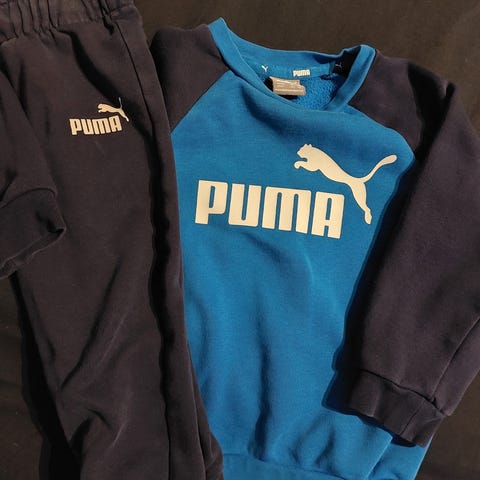 Moitteena Puman housuissa logo kulunut (P lähtenyt). Adidaksen paidassa on pari tahraa edessä, näkyy kuvassa. Muuten siistit. Nämä on meille uutena ostetut.