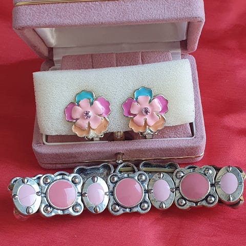 Myynnissä korusetti, joka sisältää kaulaketjun ja klipsikorvakorut.
