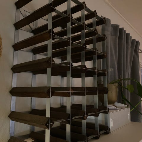 Myydään seinään kiinnitettävä 80 cm leveä viinilasiteline.