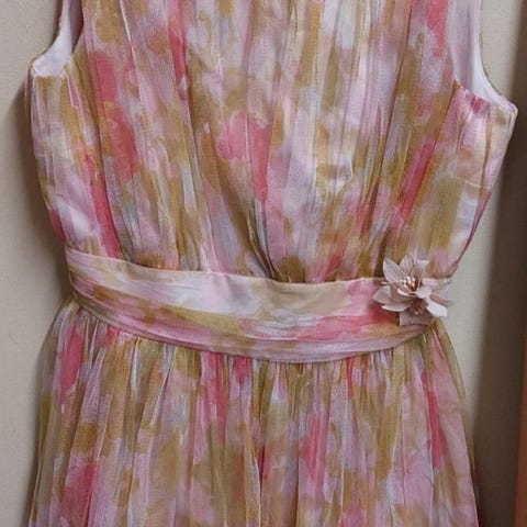 Mekossa on kauniita koristeita ja paljetteja yläosassa sekä vyö, joka korostaa vyötäröä.