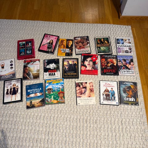 Sekalainen DVD-elokuvapaketti, jossa useita eri elokuvia. Paketti sisältää erilaisia genrejä, kuten toiminta-, komedia- ja draamaelokuvia. Sopii DVD-soittimella katsottavaksi. Yksittäisten elokuvien tarkemmat nimet ja sisällöt ilmenevät koteloiden kansikuvista.