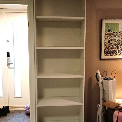 1970-luvun kirjahylly käsistä kätevältä