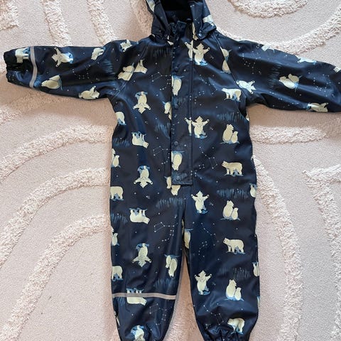 CeLaVi lasten kurahaalari, koko 100. Vuoreton ja hupullinen haalari. Joustavat hihansuut ja lahkeensuut sekä jalkalenkit, jotka auttavat pitämään lahkeet paikoillaan. Edessä on vetoketjukiinnitys, seka napit.