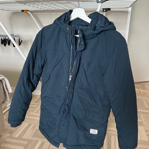 Pojan toppatakki. Nepparit ja vetoketju. Irroitettava huppu. Koko 152