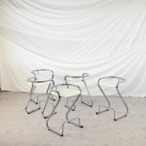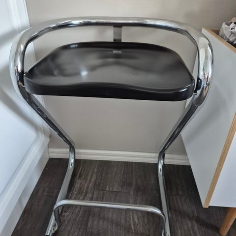 Design Richardson Seating 1971 Retro blue metalliset baarijakkarat 2 kpl. Todella näyttävät kromijalkaiset tukevat baarijakkaray, mutta kunto kohtalainen, toisessa istuimen päällisessä viilto, katso kuva.