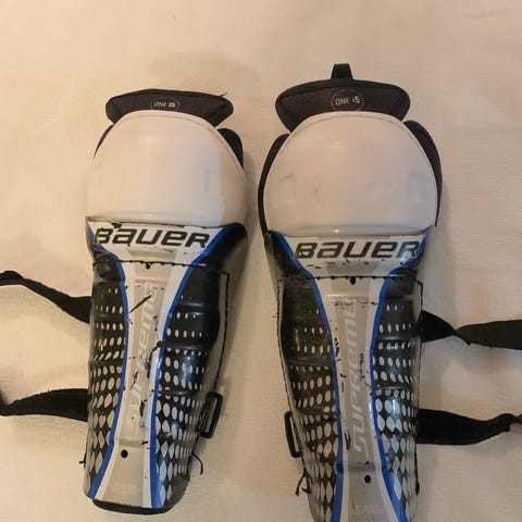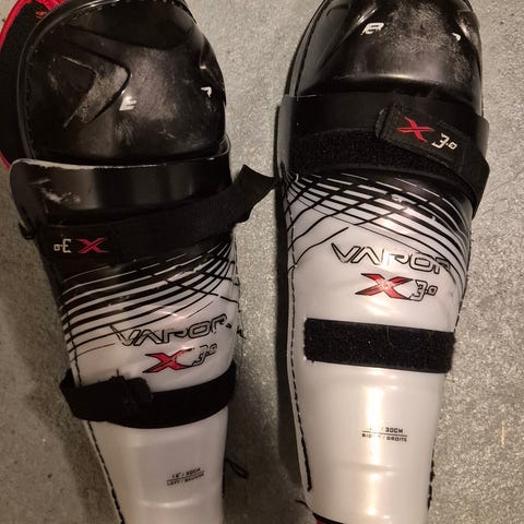 Lasten säärisuojat jääkiekkoon. Suojan pituus 27 cm. (Valkoinen osa). Tarralenkit on hyvässä kunnossa. Merkki Nike V8.