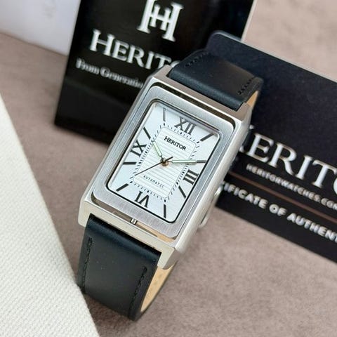 Upea Heritorin miesten kello Esteban-sarjasta. Viitenumero HERHS4201, Kellossa on automaattikoneisto (Sea-Gull 22 jalokivellä). Hyvin luettavissa osoittimien ja indeksien kontrastin ansiosta. Varustettu erottuvan muotoisella rungolla, kruunu 12–tunnin kohdalla, mikä tekee kellon kantamisesta entistä mukavampaa.Uusi ja käyttämätön!Kello on mukavalla nahkaremillä.Toimitetaan kaikkine näytettyine tarvikkeineen ja tyhjine asiakirjoineen.Koneisto: automaattinenKotelon materiaali: teräsLäpimitta: noin 29 mm ilman kruunuaRannekkeen pituus: noin 20 cm, sis. kellonIkä: 2020+Lähetys on vakuutettu.Kuvat kuuluvat kuvaukseen.