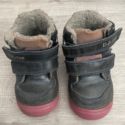 D.D. Stepin nahkaiset välikausikengät koossa 23. Paljasjalkakengät. Kunto hyvä käytetty. Tarranauhat kunnossa ja pitävät. Pohjallisen pituus n. 14,1 cm. Väri Bermuda Blue.