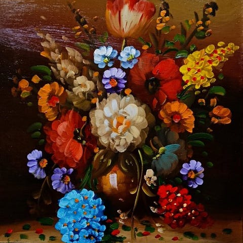 Sisilialainen taiteilija, joka on kansainvälisesti tunnettu auringonpaisteisiin inspiroituneista maisemista, juurtuen hänen kotiseutuunsa; on mukana monissa yksityiskokoelmissa ympäri maailmaa myös uusien abstraktien ja materiaalisia teosten kanssa, alkaen ensimmäisistä „Labirintit“istä aina viimeisimpiin „Floreali“-teoksiin, joissa kuin nostalginen paluu luontoon, maisema herää eloon väriläiskien kautta, jotka muuttuvat kauden kukiksi ja sykähdyttävien merkkien, jotka vilahtavat koko kankaan yllä, kuten korkeita heinän säikeitä. Ja abstrakteissa teoksissa, joissa värin ydin sulautuu taiteilijan ajatukseen lempeiden ja fluoresoivien vivahteiden kautta, syntyy uusia, taianomaisia visioita, jotka välittävät syvää ilmaisun ja vapauden tunnetta. Esillä monissa yksityiskokoelmissa sekä Euroopassa että ulkomailla, aina Miamista Hong Kongiin, sekä taidegallerioissa ympäri maailmaa, vain Catawiki-sivuston kautta on myyty yli tuhat teosta.Yksittäisteos, valmistettu kankaalle (italialainen) korkealaatuisilla ammattimaisilla akryyliväreillä, suoraan ateljeestani.Teoksen mitat ovat cm 90X140Teoksen koon vuoksi maalaus tullaan toimittamaan ilman kehystä (raami) rullattuna kovan suojaputken sisällä, mukana taiteilijan allekirjoitettu autenttinen valokuva, DHL Express -kuriiripalvelulla.Balearian saaret ja Marbella (Espanja) toimittamiskustannus on 90 euroa. Extra-UE:n viennissä tarvitaan noin 10 päivää liittyen vientiasiakirjoihin.Mahdolliset pienet värierot johtuvat valaistuksesta tai näytön näytöstä