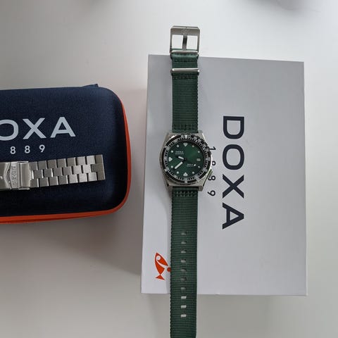 Doxa-kello, malli Sub 200, C-graph II, referenssinumerot 797.10.201.32. Erityinen kello, jossa on luettava sininen ilmoitusnäyttö sekä värikkäät korostukset. Kellossa automaattinen koneisto, ja se on varustettu kronografilla sekä näyttävällä bezelillä. Safiinir Glass. Ruuvikiinnityskrona.Käyttämätön!Sijoittuu erittäin mukavalle kumiseen mukana toimitettavaan rannekkeeseen. Toimitetaan kaikkien näkyvillä olevien lisävarusteiden kanssa.Koneisto: automaattinenranneke: teräsHalkaisija: noin 42 mmRannekkeen pituus: noin 21 cmikä: 2020+Tämä erä toimitetaan kirjeopastuksella ja vakuutettuna.