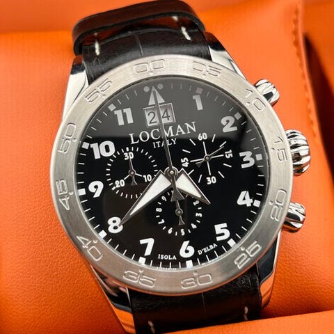 Marca: LocmanModello: Isola D’ElbaMovimento: KvartsiliikeMisura kello: 43 mm ilman kruunuaMisura ranneke: 21 cm kokonaispituus alkuperäinenFibbia: alkuperäisellä logolla varustettu solkiQuadrante: sininen sunray-efektilläCorona: ruuvikruunuFondello: titaaniCondizioni: UUSI Locmanin virallinen takuuCorredo: Täysi setti