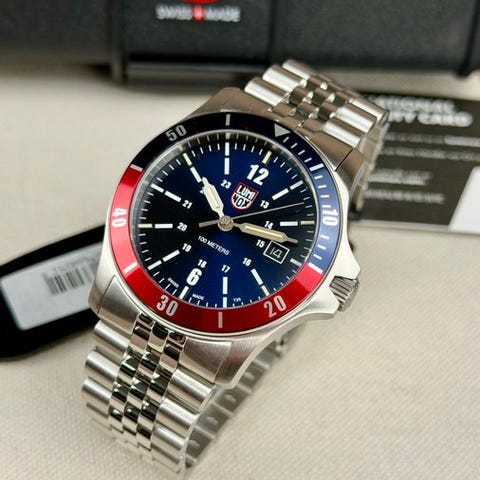 Kaunis ja vankka Luminox-kello Sport Timer -sarjasta. referenssinumero XS.0911. Kellon kotelo on terästä ja se toimii kvartsikoneistolla (515, Ronda, Swiss Made). Varustettu luminoivat viisarit ja indeksit sekä päivämääränäytöllä klo 3. Hyvin luettava taustan värin ja viisarien/indeksien kontrastin vuoksi. Lasin materiaali on safiiri.Uusi ja käyttämätön!Kello on mukavalla teräksisellä rannekkeella.Toimitetaan näytettyjen (tyhjien) tarvikkeiden kanssa.Koneisto: kvartsinenKotelon materiaali: teräsLasin materiaali: safiiriHalkaisija: noin 42 mm ilman kruunuaPaksuus: noin 13 mmRannekkeen pituus: noin 20 cm mukaan lukien kellon.Ikä: 2020+Toimitus on vakuutettu.Kuvat ovat osa kuvausta.