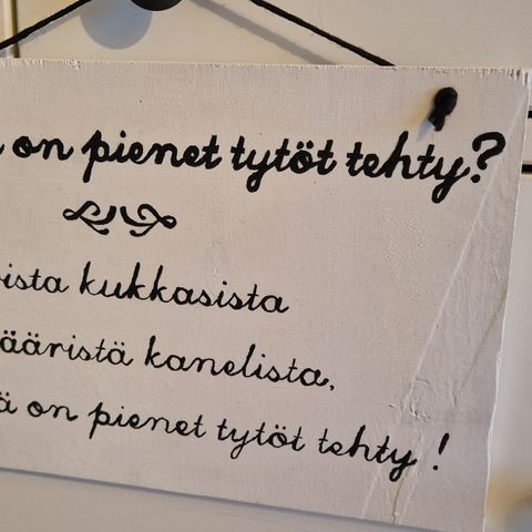 Myydään kuvan itse maalattu kyltti.