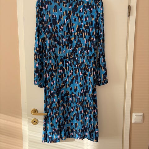 Marimekko naisten kesämekko Tyrnihillo, koko 40. Materiaalina 97% puuvilla ja 3% elastaani. Mekossa on monivärinen, kirjava kuosi, jossa on muun muassa keltaisen, turkoosin, vaaleanpunaisen ja punaisen sävyjä vaalealla pohjalla. Malli on hihaton tai hyvin lyhythihainen ja pituus on polven alapuolelle ulottuva. Sopii kesäkäyttöön arkeen tai rennompaan juhlaan.