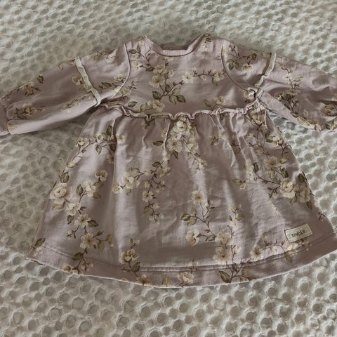 Suloinen mekko pienelle tyttövauvalle, koko 56. Ehjä ja siisti.