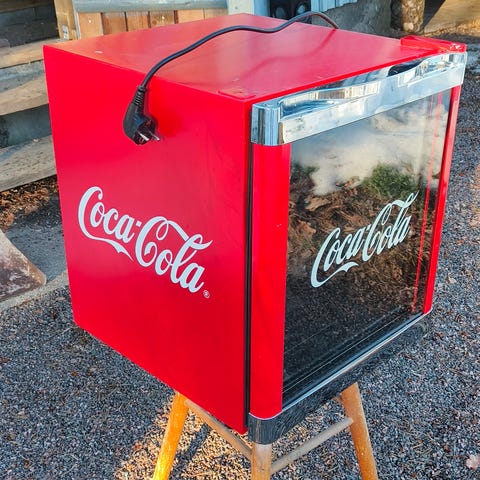 Coca Cola-jääkaappi tulevan kesän helteisiin. Pöytämallinen pienikokoinen jääkaappi vaikka juomien säilytykseen.