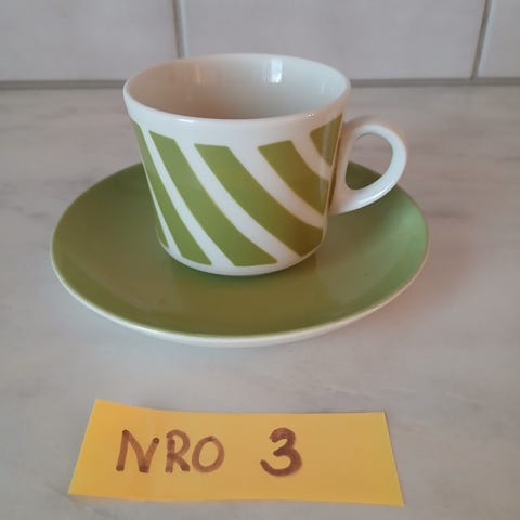 arabia puhallus puhalluskuppi puhalluskuvio puhalluskupit vihreä vinoraita kahvikuppi kahvikupit kuppi retro vintage