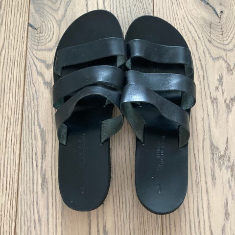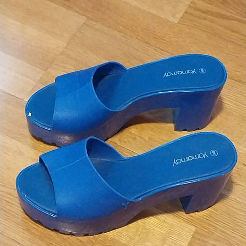 Korolliset mokkanahkaiset sandaalit. Nepparikiinnitys. Koron korkeus 8cm