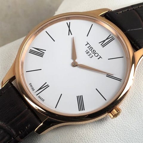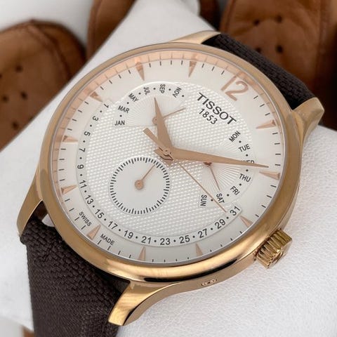 Tissot - T033.410.33.051.01Kotelo: ruostumaton teräs, keltakullattuKoneisto: sveitsivalmisteinen kvartsikoneistoKellotaulu: mustaØ: 38 mm (kruunua lukuunottamatta)Lasi: safiirilasiRanneke: alkuperäinen kultauksella varustettu ruostumattoman teräksen rannekeRannes koko: noin 21 cmKunto: Uusi!Takuu: 1 vuosi "de Horlogemeesters"Toimitus: mukaan alkuperäinen laatikko + asiakirjat (allekirjoittamaton).Aregistreerattu ja vakuutettu lähetys (DHL Express).