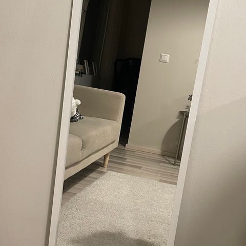 IKEA:n peili valkoisella kehyksellä. Peilissä on leveähkö, muotoiltu kehys ja takana kiinnitysreiät seinälle ripustamista varten. Soveltuu esimerkiksi eteiseen, makuuhuoneeseen tai muuhun sisätilaan kokovartalo- tai seinäpeiliksi. Kunto hyvä.