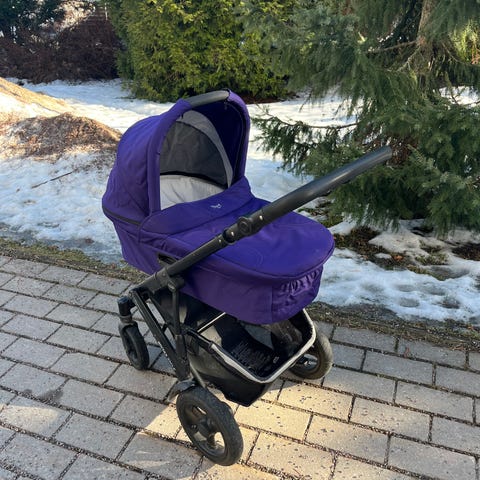 Mukana tulee runko, istuinosa, vauvankoppa, sadesuojat sekä hyttysverkko vauvakoppaan.