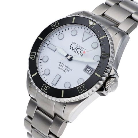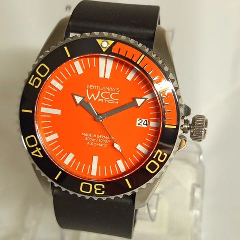 Ammattitaitoinen 300 m automaattinen sukelluskello korkeimpiin vaatimuksiin - Made in GermanySukeltakaa eleganssin ja toiminnallisuuden maailmaan eksklusiivisten ja ammattilaistasoisten Gentlemans WCC -sukelluskellojemme kanssa. Suunniteltu seikkailijoille, jotka tutkivat tuntematonta, tämä kello yhdistää vaikuttavan mekaanisen käsityötaidon ensiluokkaiseen suorituskykyyn, jotta syvään vedenalaisiin vaatimuksiin vastataan.Vesitiivis jopa 300 metriin: Sukelluskellomme on suunniteltu kestämään äärimmäisiä sukellusehtoja. 30 ATM paine-enkäydytty, ruostumattomasta teräksestä valmistettu kotelo on erinomaisen viimeistelyn mukaista. Kun kunnianhimoinen syvyys syvään meren pimeyteen halutaan, meidän sukelluskellomerkkiemme on luotettava kumppani sukellajille tinkimättömällä tarkkuudella ja luotettavuudella.Tarkkuus ja luotettavuus: Tarkka Seiko NH35 -koneisto takaa tarkan ajanmittauksen sekä veden alla että maalla. Luota erinomaiseen luotettavuuteen, riippumatta olosuhteista.Korkealaatuiset materiaalit – Made in Germany: Kaikki sukelluskellomme valmistetaan pitkäaikaisen yhteistyön tuloksena Münchenin Zeitwerkstattin kelloseppänäen kanssa Saksassa erityisen korkealaatuisista materiaaleista. Kestävä ruostumattomasta teräksestä valmistettu kotelo on 316L-terästä (leikkaustyöterä), kaksipuolisesti naarmuttamaton safiirilasi varmistaa erinomaisen luettavuuden myös kirkkaassa valossa. Kruunu on ruuvattu ja 120 napsautuksen nopeudella yksipuoleisesti pyörivä sukelluspäivälevy omaa karkeasti karkaistua keramikkisisusta BGW9-luminenssijyllin. Näin sukelluskello hurmaa valtavalla kestävyydellään ja eleganssillaan, säilyttäen kellojesi kauneuden vaativienkin sukellus seikkailujen jälkeen.Tyylikäs muotoilu: Gentlemans WCC -sukelluskellot yhdistävät toiminnallisuuden esteettiseen muotoiluun. Selkeä, konstruoitu kellotaulu hehkuvien BGW9-luminanssilä saavuttaa optimaaliset luettavuudet öiseen aikaan ja jopa pimeissä syvyyksissä.Käden mukavuus: Taitava muotoilu ja korkealaatuinen ranneke takaavat aina miellyttävän käyttömukavuuden sekä veden alla että arjessa. Meiltä tuleva sukelluskello ei ole ainoastaan ammatillinen aikamittari, vaan myös tyylikäs korkealuokkainen lisävaruste.Sukeltakaa unohtumattomille seikkailuille Gentlemans WCC -sukelluskellon kanssa – luotettava kumppaninne syvyyksien löytämiseen. Löydä eleganssin ja toiminnallisuuden symbioosi ja aseta uudet vedenalaiset standardit. Tilaa nyt ja inspiroidu laadustamme.Spesifikaatiot:Kotelon materiaali 316 L-teräs Safiirilasi onkeroitettu Levin muotoinen musta/oranssi kellö, BGW9-luminanssilla Kotelon pohja ruuvattava Paineistus 30 ATM astiKoneistoSeiko (SII) NH35 Automaattinen 24 laakeria Sekunnin pysäytys Käyntivaranto: 41 tuntiaToiminnot Aika, minuutti, keskussekunti, päivämäärä Kruunun ruuvattu Kellotaulu & osoittimet Kellotaulu oranssi Luminestit Luminanssiosoitin Luminanssi: BGW9 Keskussekunti-osoitin PäivämääräRanneke & Solki Ranneke: Ruostumaton teräs, 22 mm Solkku: Työkalurunkoinen purkaus ja integroitu sukelluslaajennus ruostumattomasta teräksestä Rannekkeen pituus: 22 cm + 2,5 cm sukelluksen pidentäminenKokoerät Kokoelossa kokonaisuus: 46 x 49 mm (kellon mukaan lukien kruunu) Ø: 42 mm (ilman kruunua) Korkeus: 15 mm Rannekkeen leveys: 22 mm Koko yhteispaino: n. 230 gToimitussisältö Kello Täytetty takuu-sertifikaatti Box