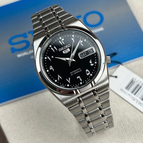 Kaunis ja laadukas Seiko-kello, referenssinumerolla SNKP21J1, Seiko 5 -mallistosta. Kellossa on automaattinen koneisto (Seiko Caliber 7S26) ja erottuva arabialaisilla numeroilla varustettu kellotaulu. Lisäksi kellossa on kahden kielen (arabia/englanti) päivän ja päivämäärän näyttö kellon kolmen tunnin kohdalla. Kruunu on sijoitettu kolmen tunnin kohdalle.Uusi ja käyttämätön!Kello on teräksisessä kotelossa ja toimitetaan mukana tulevalla teräksisellä rannekkeella.Toimitetaan laatikon ja leimatun dokumentaation kera.Koneisto: automaattinen (Seiko Caliber 7S26)materiaali kotelo: terästädiameter: noin 42 mm ilman kruunua.kotelon paksuus: noin 12 mmlasI: Hardlexrannekkeen pituus: noin 22 cm, kellon kanssa.Valmistusvuosi: 2024Toimitus vakuutetussa postituksessa.Kuvat kuuluvat kuvaukseen.