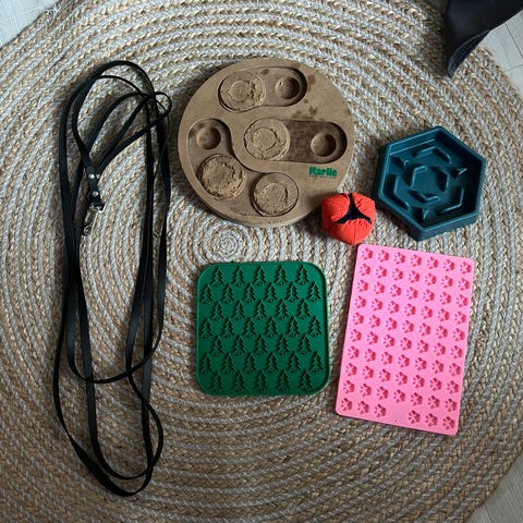 Kahdet kynsisakset, nuolumatto, älypeli, klikkeri ja kaksi ruokakuppia. Kaikki yhteensä 10e. Älypeli kuluneempi, mutta edelleen toimiva.