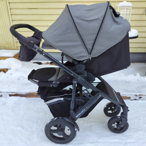 Britax motion matkarattaat, hyväkuntoiset pientä kulumaa maalipinnassa sekä lukitusnappula mikä pitää rattaat kasattuna on poikki, ei vaikuta käytössä kylläkään.