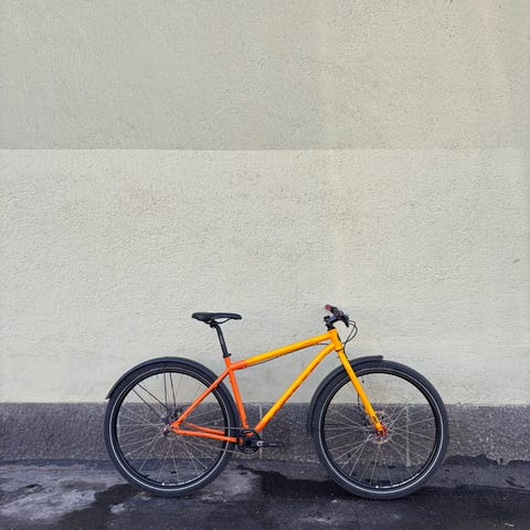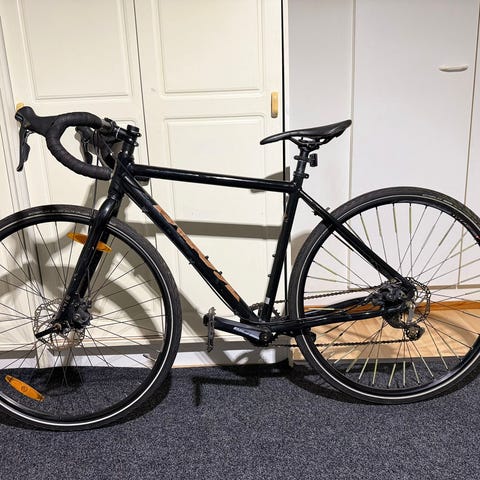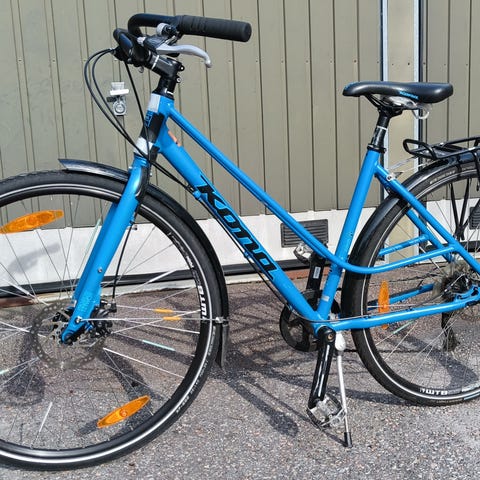 Säilytetyy lämpimässä pyörävarastossa. Mukaan saatavissa "normaali" ohjaustanko paikalla olevan droppitangon lisäksi.