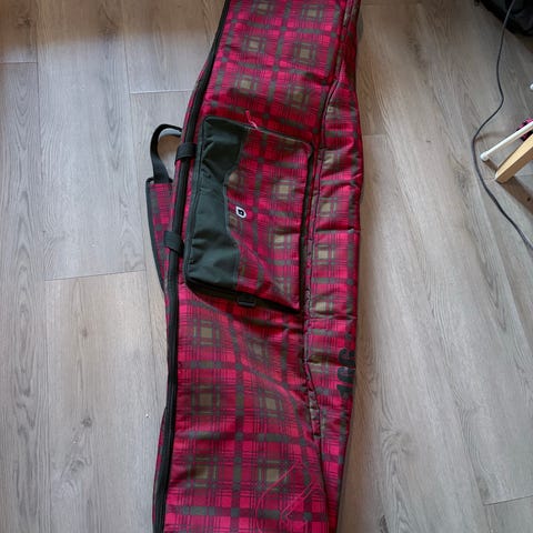 Sisään menee vaivatta 160cm lauta, varustettu olkahihnalla ja selkäremmeillä! Ainoa miinus on tuon pikkutaskun vetoketju joka rikki mutta varsinaisen lautapussin vetoketju ehjä ja toimiva!