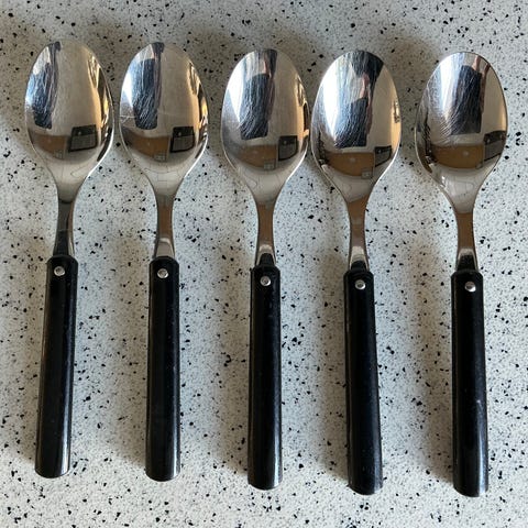 Tarjolla 6 kpl haarukkaa, joiden pituus on 20 cm. Kaikki olleet käytössä, mutta ovat siistejä. Teräsosat ovat kirkkaat ja vähänaarmuiset. Hinta on 6 kappaleen yhteishinta.