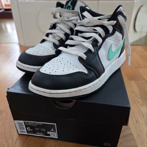 Nike Jordan lasten lenkkarit, koko 39. Unisex-malli, jossa vihreä-musta väritys ja kumipohja. Sopivat arkikäyttöön ja kevyeen liikuntaan. Kuvissa näkyy kengän yläosa, sisäosa ja pohja sekä erilliset vihreät nauhat. Uudet nauhat mukaan.