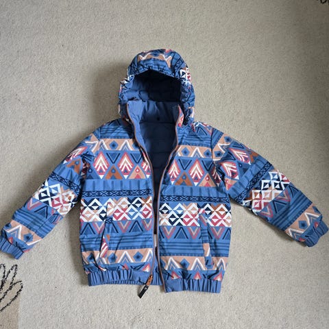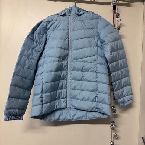 Hyväkuntoinen ja oikein kevyt untuvatakki, harvakseltaan käytetty, ei niin kirkkaan oranssi, kuin kuvassa näyttää, pikemminkin poltettu oranssi. Sanoisin, että menee koossa 122-134.