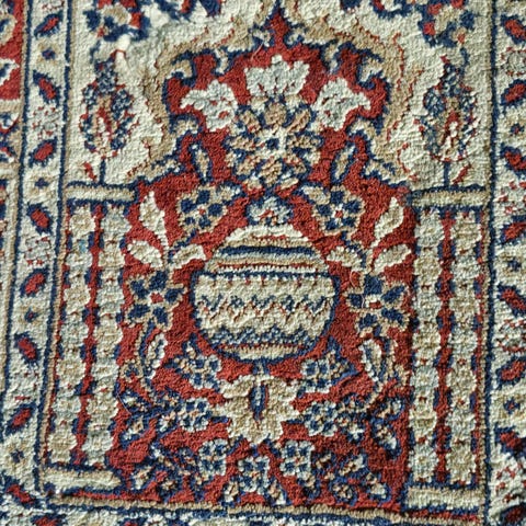 Turkkilaisen Saryon Carpetin valmistama matto on monivärinen ja siinä on perinteinen kuviointi. Päävärit ovat harvinaisempia pastellisävyjä: vaalea / kerma, vaaleanpunainen ja vaaleansininen.